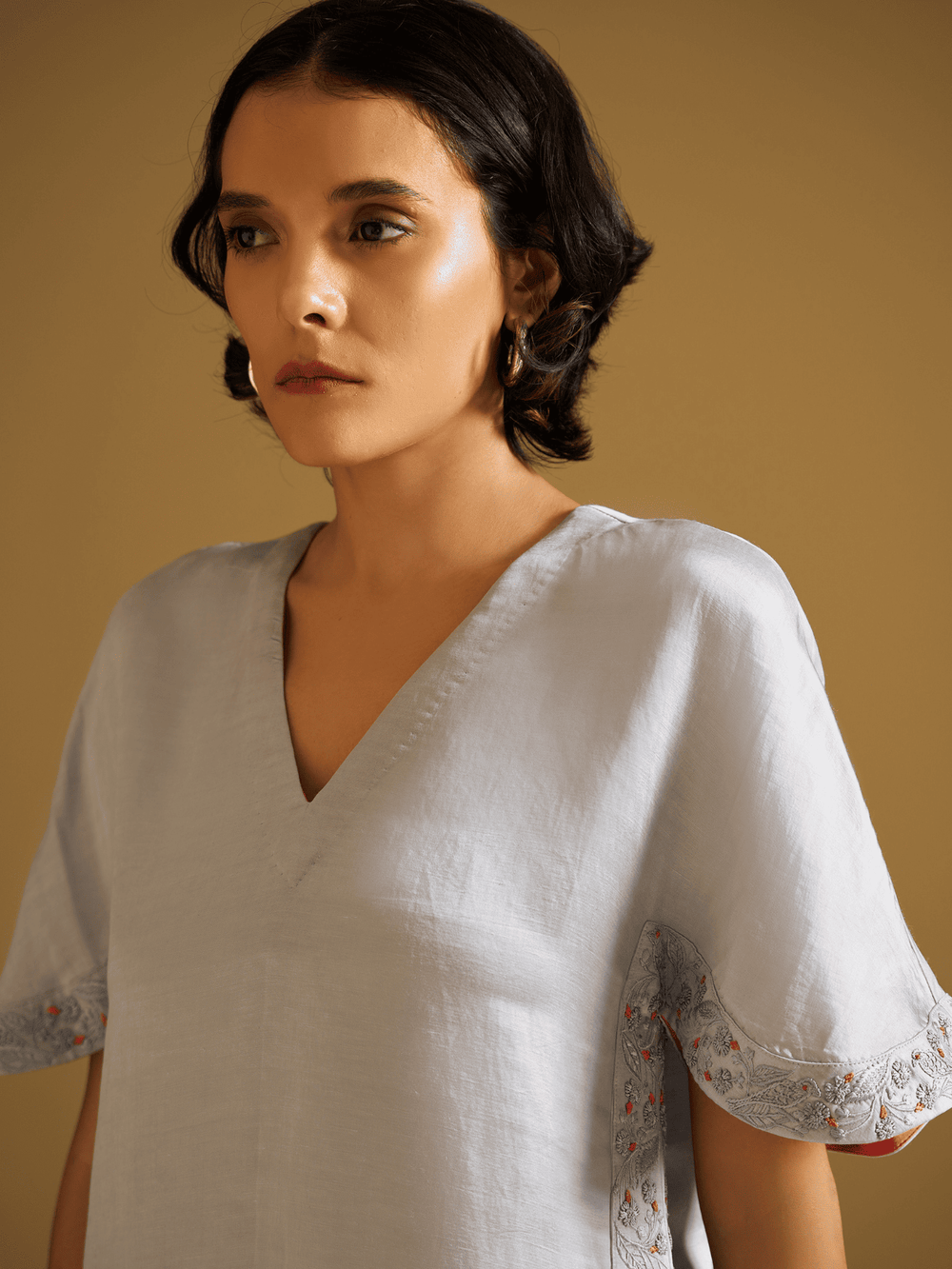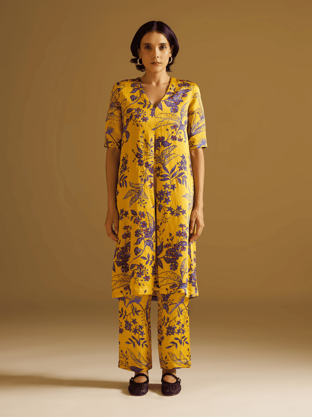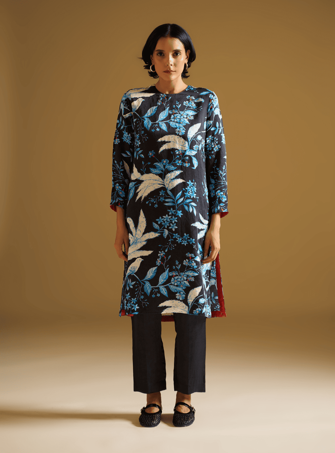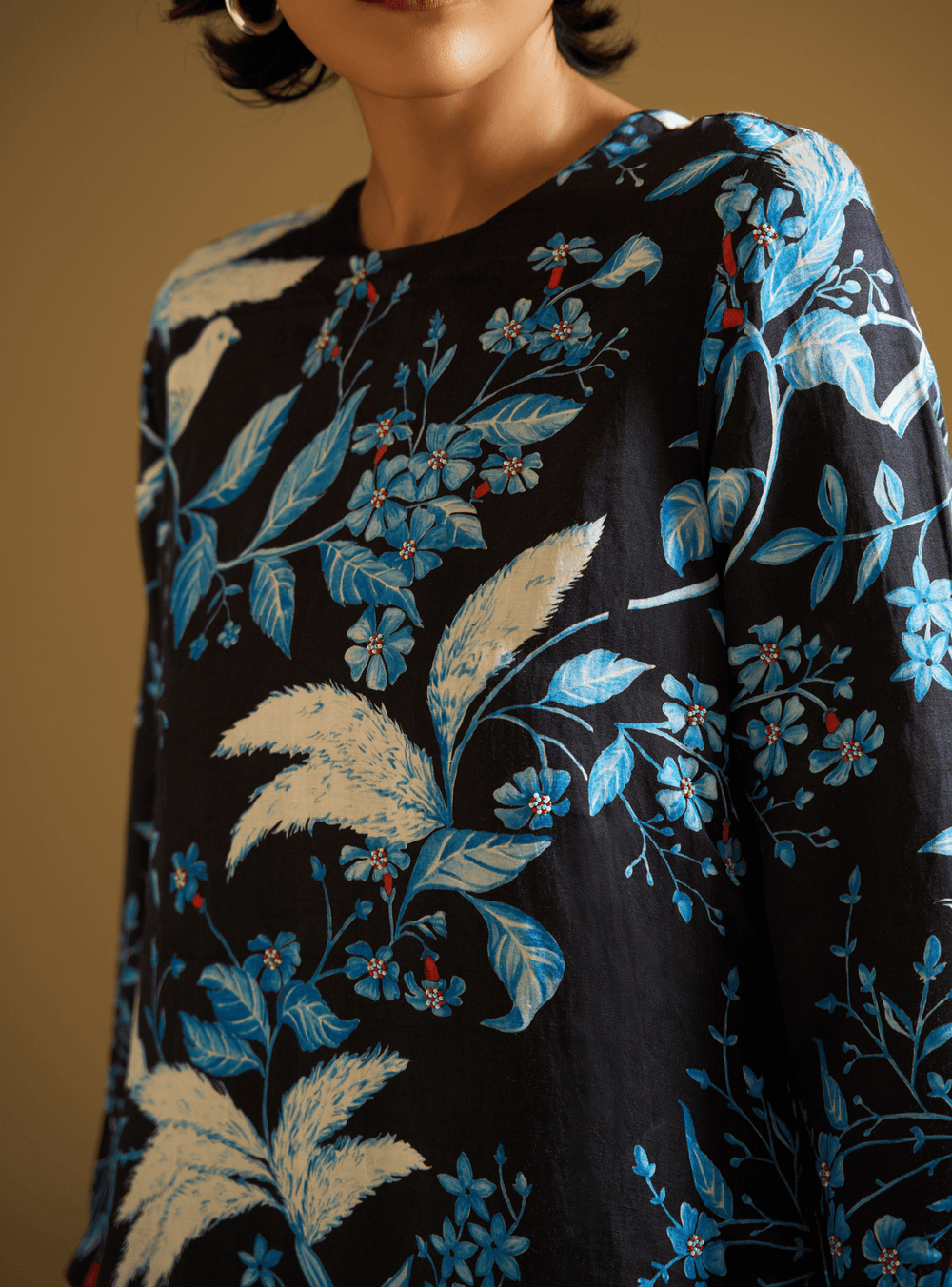 This fashion collection draws inspiration from Kaashphool’s delicate elegance. The designs capture the grass’s airy, feather-like structure through intricate motifs and flowing silhouettes. Shirts, Kurta Pants, and contemporary dresses feature Kashphool-inspired patterns, printed with techniques that echo Bengal’s rich art heritage, on rich silk linen fabric. The extended palette captures the gentle transition into autumn-with whispers of white, soft blush pinks, muted golds, and earthy greens, evoking the calm before celebration. Each garment is a narrative of cultural heritage, blending traditional craftsmanship with modern aesthetics.